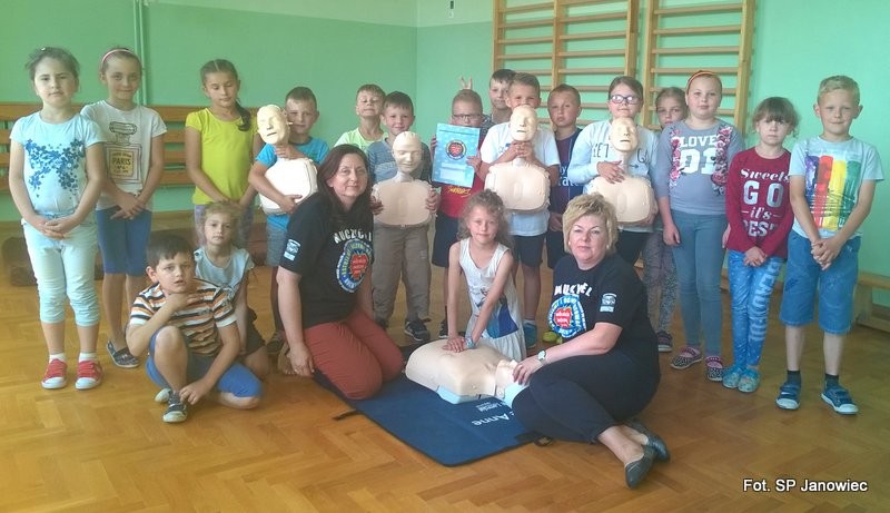 Uczniowie klas I – III Zespołu Szkolno – Przedszkolnego w Janowcu pod kierunkiem nauczycielek edukacji wczesnoszkolnej Małgorzaty Krzystyniak i Grażyny Chmury brali udział w zajęciach praktycznych udzielania pierwszej pomocy osobom poszkodowanym w ramach realizacji programu WOŚP „Ratujemy i Uczymy Ratować”. Wykazali zaangażowanie i efekty na 6! Mamy nadzieję i życzymy wszystkim, by pomoc nie musiała być udzielana, a wakacje były w pełni bezpieczne i udały się na 102.