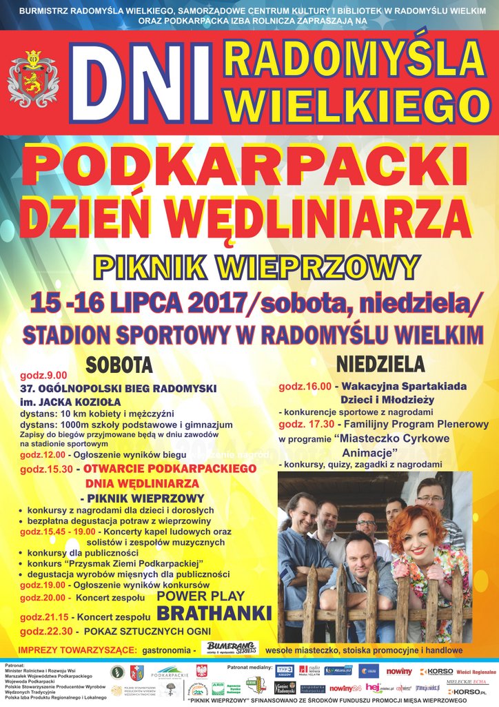 Po ogłoszeniu wyników konkursów wędliniarskich o godz. 20.00 rozpocznie się muzyczny wieczór z gwiazdami, w trakcie którego wystąpią zespoły Power Play i Brathanki (od godz. 21.15). Dzień zakończy pokaz sztucznych ogni.