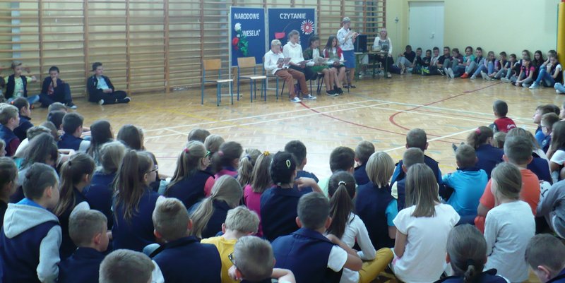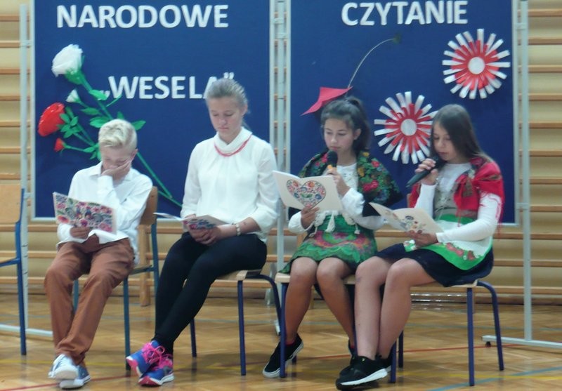 Następnie uczniowie i nauczyciele wysłuchali fragmentów utworu, ukazujących barwną, niezwykle żywą opowieść o Polsce i Polakach, o naszych sukcesach, ale także o niewykorzystanych szansach. Najpiękniejsze sceny, czytane przez uczniów klas VII i nauczycieli, w charakterystycznej gwarze, przyniosły wiele pozytywnych przeżyć. Na koniec wysłuchano utworu Marka Grechuty „Wesele”. Spotkanie to było okazją, by przypomnieć dzieło Wyspiańskiego i uświadomić sobie jego wyjątkowy charakter. Akcję czytania przygotowały E. Hajduk i B. Pleban.