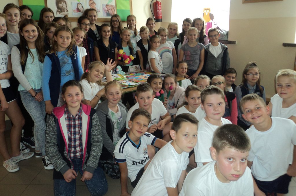 Dziewczynka ma zespół Downa. Kocha ludzi i zwierzęta. Uwielbia otrzymywać kartki pocztowe. Dlatego też uczniowie przygotowali dla Adrianki własnoręcznie zrobione pocztówki. Do życzeń urodzinowych dołączyli bajeczki, kolorowanki, książeczki o zwierzętach oraz maskotki i słodycze. Duża paczka została wysłana do adresatki, aż nad morze. Dzieci biorące udział w akcji wyrażają nadzieję, że przesyłka sprawi dziewczynce wiele radości. Akcję przeprowadziły nauczycielki języka polskiego Beata Pleban i Elżbieta Hajduk.