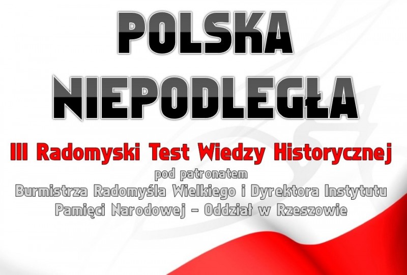 - W tym roku ponownie zaproponowaliśmy radomyskiej młodzieży udział w teście dotyczącym naszych dziejów z lat 1914-1922, a więc z czasów kształtowania się naszej państwowości po 123-letniej nieobecności na mapach świata. Poprzez te zmagania chcemy promować historię naszego kraju wśród młodego pokolenia – mówi pomysłodawca i współorganizator testu Krzysztof Babiarz z Urzędu Miejskiego w Radomyślu Wielkim.