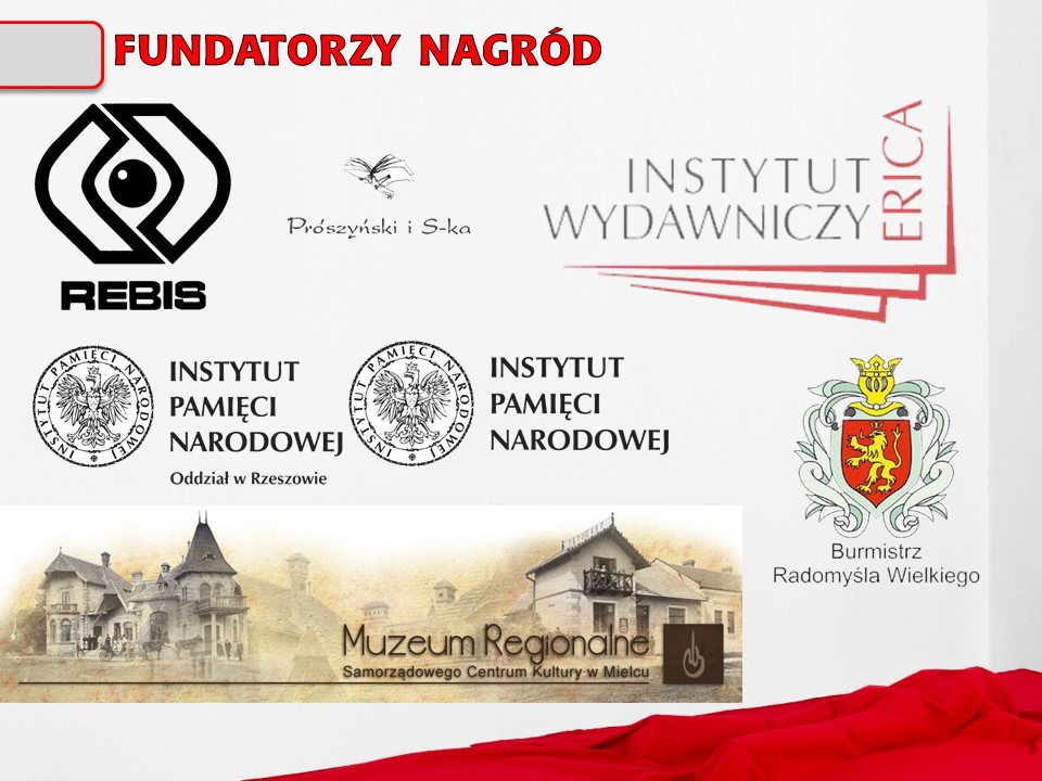 W tym miejscu należą się podziękowania fundatorom, którzy je przekazali. Przede wszystkim burmistrzowi Józefowi Rybińskiemu za ufundowanie nagrody głównej, a także rzeszowskiemu oddziałowi Instytutu Pamięci Narodowej za gry edukacyjne i książki, IPN-owi, Muzeum Regionalnemu w Mielcu, oraz wydawnictwom Prószyński i S-ka, Erica i Rebis, które przekazały książki o tematyce historycznej.