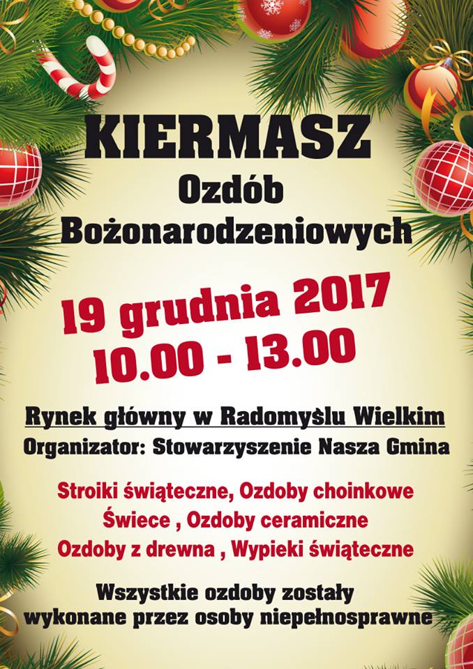 Początek wydarzenia zaplanowano na godz. 10.00. Potrwa ono przez trzy godziny. W tym czasie będzie można nabyć stroiki świąteczne, ozdoby choinkowe, świece, ozdoby ceramiczne i drewniane oraz ciasta świąteczne. Wszystkie ozdoby, które będą prezentowane na kiermaszu organizowanym przez Stowarzyszenie „Nasza Gmina”, wykonane zostały przez osoby niepełnosprawne.