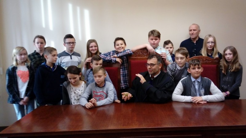 Tajniki pracy Sądu Rejonowego w Mielcu, odkrywała przed uczniami pani Sylwia. Dzieci miały niepowtarzalną okazję zwiedzić sale rozpraw, czytelnię akt, przyjazny pokój przesłuchań. Bardzo ciekawym punktem wycieczki było spotkanie z wiceprezesem sądu. Sędzia w interesujący sposób opowiadał o swojej odpowiedzialnej i trudnej pracy, a także o pracy prokuratorów, adwokatów, kuratorów. Wspomniał również o nietypowych i zaskakujących sytuacjach, z którymi można się spotkać na sądowej wokandzie. Wiceprezes przystępnie i obrazowo mówił o tym, jak ważne jest przestrzeganie prawa i jakie konsekwencje grożą tym, którzy łamią przepisy i w jakikolwiek sposób krzywdzą innych.