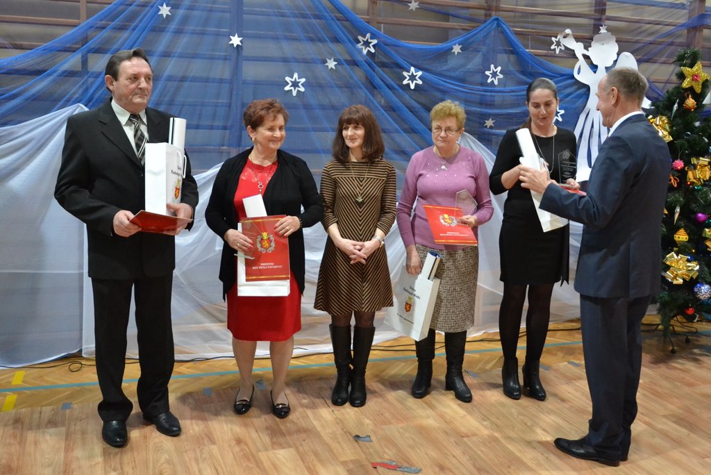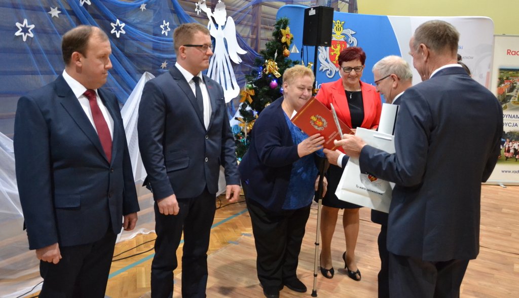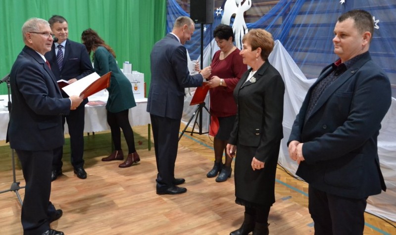 W trakcie tradycyjnego spotkania opłatkowego, które odbyło się w ostatni czwartek starego roku, władze gminy wyróżniły za działalność społeczną 35 osób, które od lat aktywnie angażują się w życie społeczne wsi.- Dziękuję wszystkim społecznikom. Bierzecie na siebie państwo przygotowanie wielu imprez i przedsięwzięć w swoich lokalnych społecznościach, a nie jest to łatwa praca. Poświęcanie na to swój czas, a nierzadko i pieniądze. To co robicie często bywa oceniane, ale bywa niedoceniane. Niemniej mam nadzieję, że ta praca społeczna, którą wykonujecie, przynosi wam wiele satysfakcji – powiedział burmistrz Józef Rybiński, który wraz z przewodniczącym Rady Miejskiej Janem Miękosiem wręczał pamiątkowe statuetki i upominki.