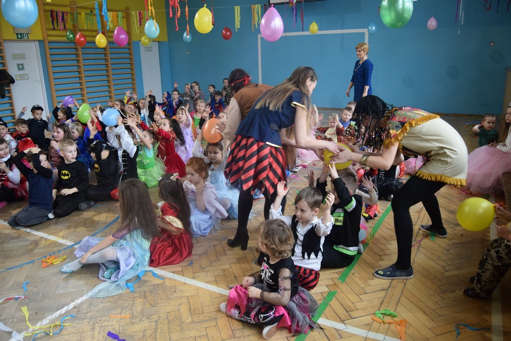 Rano bawiły się przedszkolaki i uczniowie klas I-III. W pięknych, bajkowych strojach tańczyli do znanych dziecięcych przebojów, chętnie brali udział w prowadzonych konkursach przez wynajętą firmę, a w przerwie zajadali smakołyki sponsorowane przez Radę Rodziców.