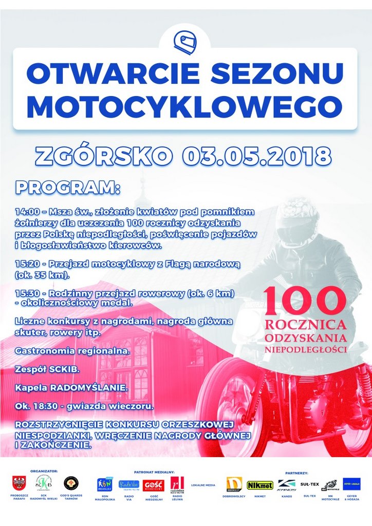3 maja w Zgórsku zainaugurowany zostanie sezon motocyklowo - rowerowy.