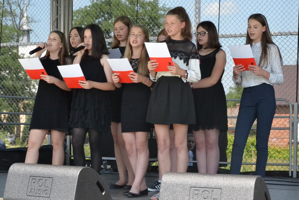 Nie obyło się bez pieśni legionowych w wykonaniu uczniów ze szkoły w Żarówce, które wynagrodziły trud marszałkowi przekazując mu bukiet biało-czerwonych kwiatów. Po występie wypuszczono w niebo sto biało-czerwonych balonów, a dzieci układały megapuzzle z wizerunkiem Piłsudskiego.