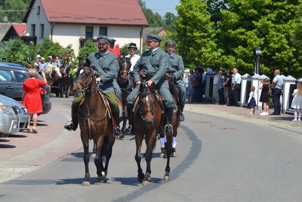 Toteż przez wioskę przejechały zaprzęgi z zacnym gościem w pierwszym powozie - Józefem Piłsudskim i prowadzącymi legionistami.