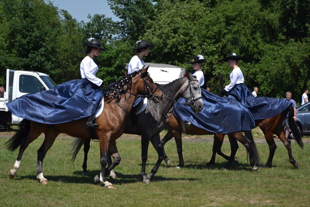 Zanim w konkursach zaprezentowali się woźnice, publika zobaczyła kadryl w wykonaniu uczennic Szkółki Jeździeckiej Stadniny Koni LUNA.