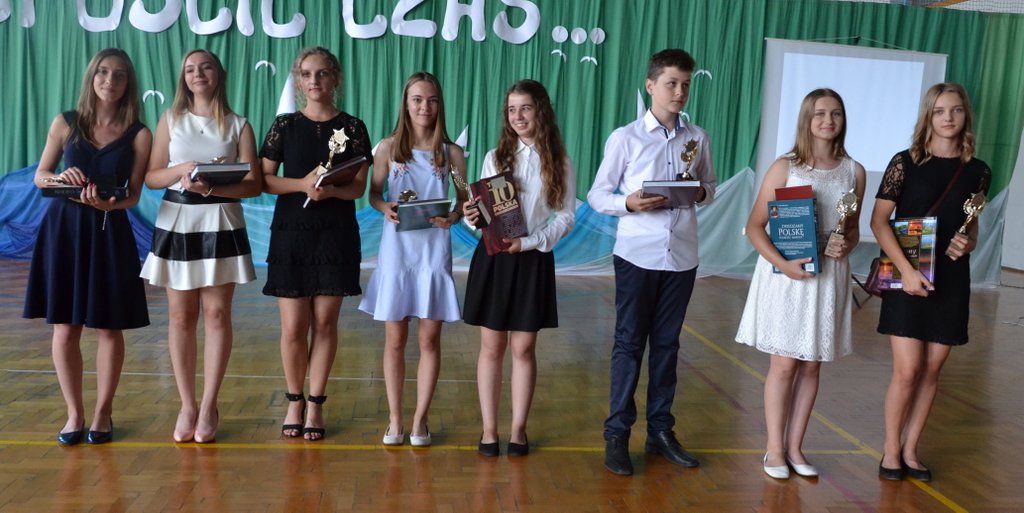 Najlepszymi gimnazjalistkami ze średnią ocen 5,33 zostały Marcelina Wilk z klasy 2 b i Joanna Wolak z klasy 3b. Z kolei średnią ocen ukończenia gimnazjum 5,22 uzyskali: Tomasz Siembab, Klaudia Marczyk, Karolina Sorochman, Marzena Wilk, Justyna Jarkiewicz i Weronika Wałęga. Uczniowie ci otrzymali: statuetkę, nagrodę książkową i list gratulacyjny dla rodziców.