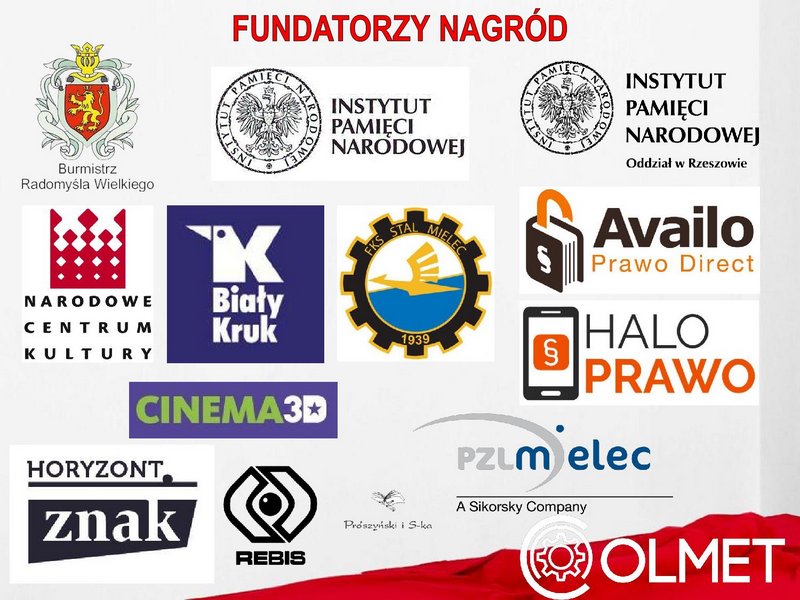 Burmistrz Radomyśla Wielkiego, Instytut Pamięci Narodowej Oddział, Instytut Pamięci Narodowej Oddział w Rzeszowie, Narodowe Centrum Kultury, Spółka Availo Prawo Direct - Porady Prawne przez Telefon i Internet promująca markę HALO PRAWO, FKS Stal Mielec, PZL Mielec, kino Cinema 3D, firma Olmet z Partyni oraz wydawnictwa Znak Horyzont, Biały Kruk, Prószyński i s-ka, Dom Wydawniczy Rebis.