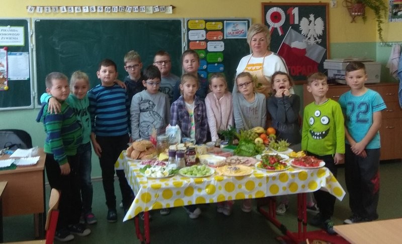 Powstały wyspy: kanapkowa, warzywna, owocowa, nabiałowa, przyprawowa oraz z napojami. Działania przebiegały sprawnie pod okiem nauczycielek: Katarzyny Madury, Grażyny Chmury, Małgorzaty Jeniec i Małgorzaty Krzystyniak. Uczniowie nie zapomnieli też o zaproszeniu gości – pani dyrektor, nauczycieli i kolegów ze starszych klas.