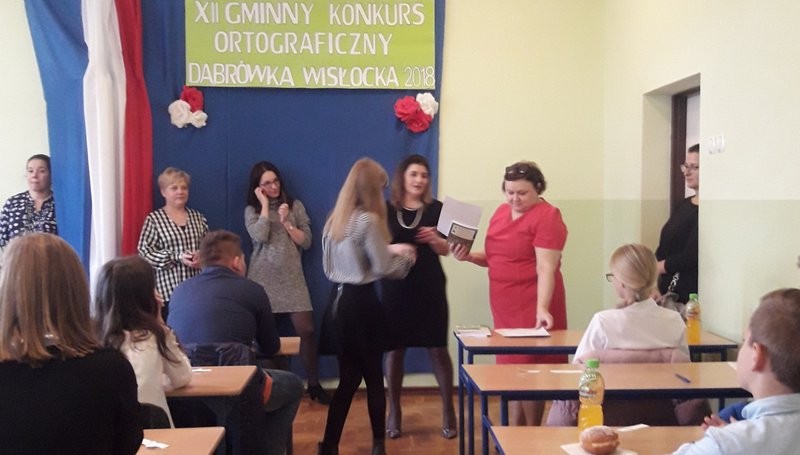 Komisja w składzie: Jolanta Palion, Beata Wrzesień, Agnieszka Skrzyniarz, Renata Mika, Katarzyna Dubiel, Beata Pleban, Jolanta Laska i Alina Szot, oceniła niepodległościowe dyktando w formie tekstu z luką, które sprawdzało umiejętności ortograficzne uczniów. Najlepiej poradziła sobie Maja Falarz z Dąbrówki Wisłockiej. Druga była Wiktoria Siembab (Dulcza Mała), a trzecia Karolina Żytniak (Żarówka). Wyróżnienia otrzymali: Gabriela Błach (Zdziarzec), Justyna Krzystyniak (Dąbrówka Wisłocka), Wiktoria Kuśnierz (Partynia), Michał Sadowski (Janowiec), Filip Skrzyniarz (Dulcza Wielka), Anita Szocik (Radomyśl Wielki) i Wiktoria Wyzga (Podborze).