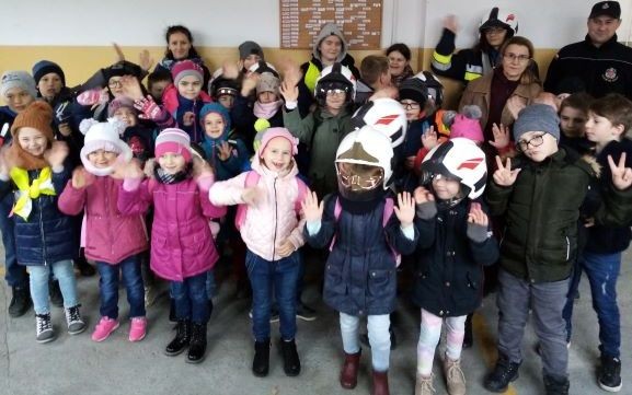 Dzieci zwiedziły piekarnię GS Samopomoc Chłopska, w której dowiedziały się jak robi się pyszny chleb na zakwasie oraz skosztowały słodkich specjałów piekarni. Następnie wszyscy udali się do Komisariatu Policji, by tam zobaczyć celę i patio - nieprzyjemne miejsca dla łamiących prawo. Kolejnym punktem wycieczki była Ochotnicza Straż Pożarna. Strażacy ciepło przywitali uczniów i wyjaśnili na czym polega praca strażaka i z jakich sprzętów korzystają podczas akcji. Ostatnim punktem była wizyta w Urzędzie Pocztowym, gdzie dzieci chętnie przymierzały strój listonosza, sprawdzały skrzynkę na listy oraz pieczętowały dokumenty.