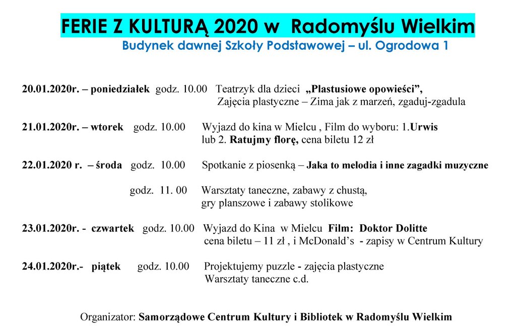 Dodajmy również, że podczas ferii pozalekcyjne zajęcia dla dzieci prowadzone są także w szkołach podstawowych naszej gminy. Uczniowie będą spędzać wolne dni wyjeżdżając poza swoje rodzinne miejscowości, m.in.: do Krakowa, Mielca, Tarnowa czy Dąbrowy Tarnowskiej. Skorzystają z propozycji jakie oferują kina i teatr. Będą również na lodowisku, basenie, ściance wspinaczkowej i w parku trampolin. Najmłodsi będą mieli do dyspozycji sale zabaw. Zajęcia feryjne będą odbywać się także w samych szkołach, które zapraszają na gry logiczne, planszowe, zabawy, turnieje sportowe, bale karnawałowe oraz zajęcia plastyczno-techniczne.
