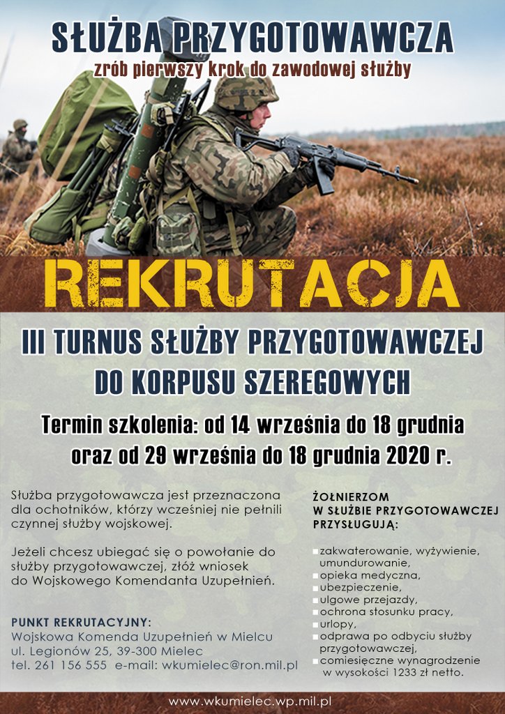 Rusza trzeci turnus służby przygotowawczej do korpusu szeregowców. Jeśli jesteś zainteresowany skontaktuj się z WKU Mielec.
