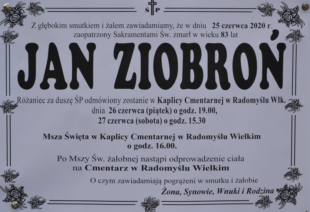 Pokój Jego Duszy. Rodzinie zmarłego składamy najszczersze kondolencje.