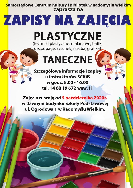 Szczegółowe informacje i zapisy u instruktorów SCKiB pod nr telefonu 14 681 96 72 wew. 11 w godz. od 8.00 do 16.00. Zajęcia ruszają 5 października i odbywać się będą w budynku byłej Szkoły Podstawowej w Radomyślu Wielkim (ul. Ogrodowa 1.).