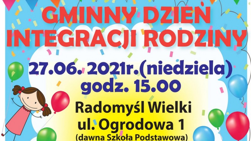 Już w najbliższą niedzielę (27 czerwca) zapraszamy dzieci wraz z rodzicami, babciami i dziadkami na Gminny Dzień Integracji Rodziny.