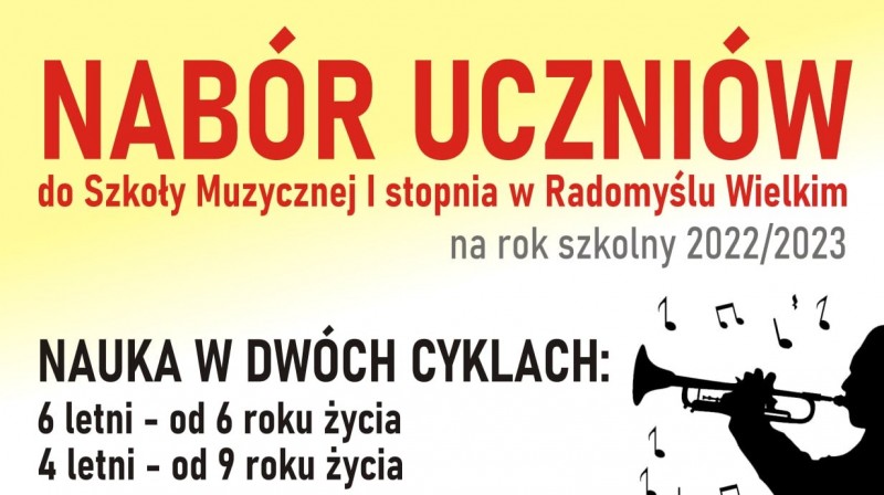 Przypominamy, że trwa nabór uczniów do Szkoły Muzycznej I stopnia w Radomyślu Wielkim na rok szkolny 2022/23.