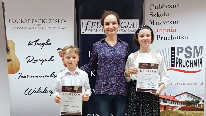 Szymon Siedlik, podopieczny Adriana Jędrzejczyka, zajął pierwsze miejsce na II Makroregionalnym Konkursie Waltornistów w Niwiskach. Sukces Szymona jest o tyle cenny, że jest on uczniem pierwszej klasy szkoły muzycznej, a rywalizował z dużo bardziej doświadczonymi od siebie uczestnikami. Podczas jubileuszowego X Przeglądu Szkół Muzycznych w Pruchniku uczniowe Elżbiety Maliszewskiej: Zuzia Kurek i Mateusz Ślęczkowski z klasy gitary zajęli pierwsze miejsca w swoich kategoriach.