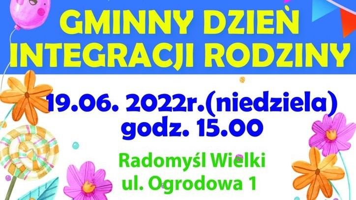 Już w najbliższą niedzielę (19 czerwca) zapraszamy dzieci wraz z rodzicami, babciami i dziadkami na Gminny Dzień Integracji Rodziny.