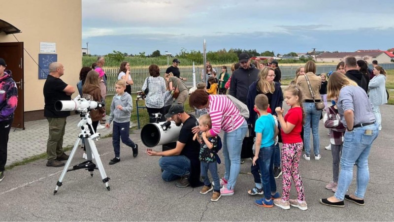 W sobotni wieczór i noc miała miejsce kolejna nocna przygoda z astronomią przygotowana przez ekipę radomyskiego obserwatorium. W planerarium Matteo pokazywał konstelacje gwiezdne, przy stanowisku Dominik opowiadał o rakietach i o Polskim Towarzystwie Rakietowym, a Jacek, Janusz i Adrian prezentowali nasze teleskopy i zabawki techniczne.