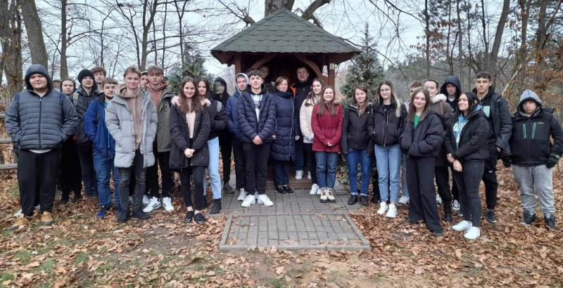 Spotkanie odbyło się dzięki wielkiej gościnności i uprzejmości gospodarza spotkania – Pana Macieja Rachwała – ratownika medycznego oraz myśliwego z Koła Łowieckiego "Diana Mielec". Zajęcia rozpoczęliśmy od zapalenia znicza w kapliczce św. Huberta, gdzie z ogromną uwagą wysłuchaliśmy historii życia patrona myśliwych i leśników opowiedzianej przez p. Macieja.