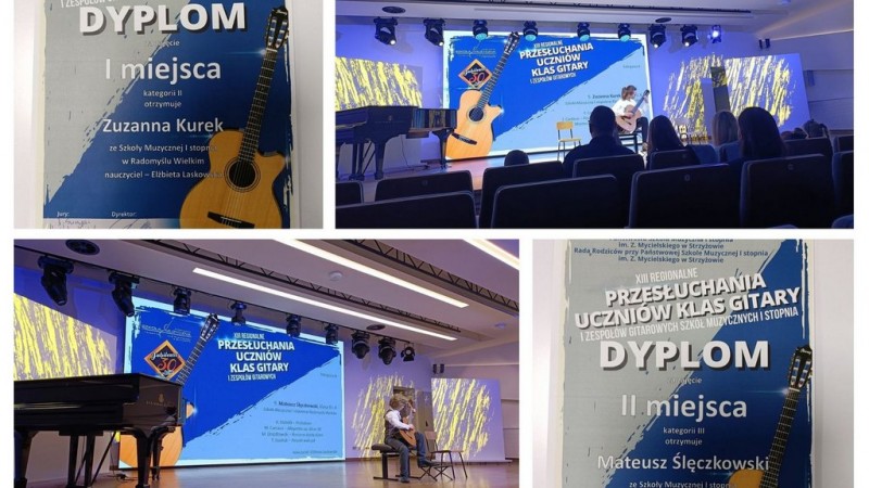 Gratulacje dla Zuzanny Kurek i Mateusza Ślęczkowskiego, którzy zostali laureatami XIII Regionalnych Przesłuchań Uczniów Klas Gitary i Zespołów Gitarowych Szkół Muzycznych I Stopnia w Strzyżowie. Zuzia zajęła pierwsze miejsce, a Mateusz drugie.