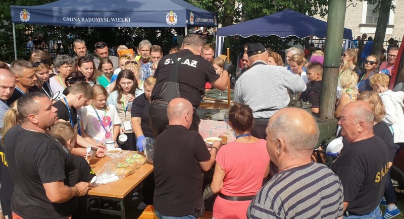 I tradycyjnie już po Mszy Świętej radomyślanie byli gościnni dla pielgrzymów, na których czekała grochówka (przygotowana przez strażaków z OSP Dulcza Mała i radomyskich wędliniarzy Andrzeja Krzystyniaka i Władysława Giżę), a także żurek. Chętnych na posilenie się przed dalszą drogą nie brakowało.