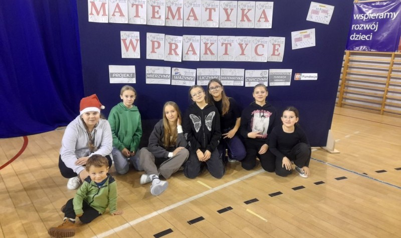 Natomiast 11 grudnia odbyło się popołudniowe spotkanie pod tytułem “Matematyka w praktyce”, które również zostało zorganizowane w ramach realizacji projektu. Na spotkanie zostali zaproszeni wszyscy uczniowie szkoły wraz z rodzicami. Każdy uczestnik spotkania miał do wykonania zadania z karty pracy. Uczniowie musieli zmierzyć między innymi swój wzrost, długość swojej stopy czy długość sali gimnastycznej, sprawdzali także wagę swojego buta, wody oraz plecaka. Każdy wymiar musieli zapisać w dwóch wybranych przez siebie jednostkach. Następnie uczestnicy spotkania udali się do sal lekcyjnych, aby stworzyć ich plany w skali 1:20. Uczniowie wraz z rodzicami musieli wymierzyć ławki, tablice, szafy oraz w pomniejszeniu narysować je na otrzymanych kartkach.
