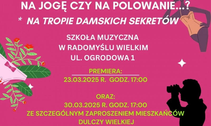 Premiera odbędzie się w najbliższą niedzielę, 23 marca, o godz. 17:00. Po raz drugi spektakl będzie można zobaczyć tydzień później także o godz. 17:00. Przedstawienie będzie prezentowane na deskach sali widowiskowej w Radomyślu Wielkim przy ul. Ogrodowej 1. Wstęp wolny. Spektakl przeznaczony dla osób powyżej 16 roku życia. Szczegóły na plakacie poniżej.