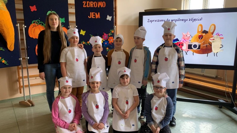 Uczniowie uczyli się jak komponować talerz zdrowego żywienia, samodzielnie przygotowywali surówki oraz degustowali ekologiczne jabłka oraz mleko. Każdy uczestnik otrzymał fartuszek i czapkę kucharską, a na zakończenie każda klasa otrzymała zestaw „mini ogródka” do samodzielnego wysiewu warzyw, owoców i ziół.