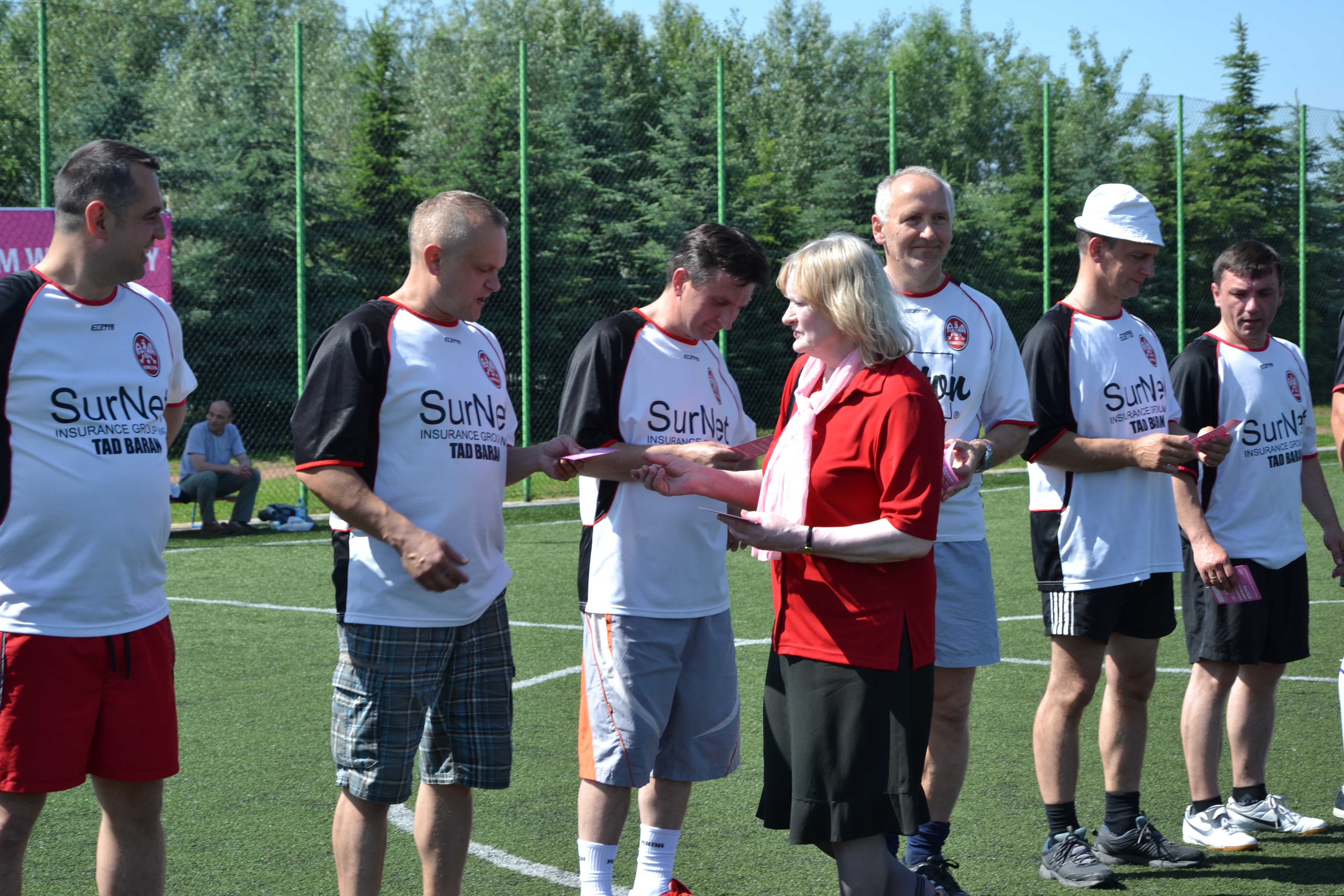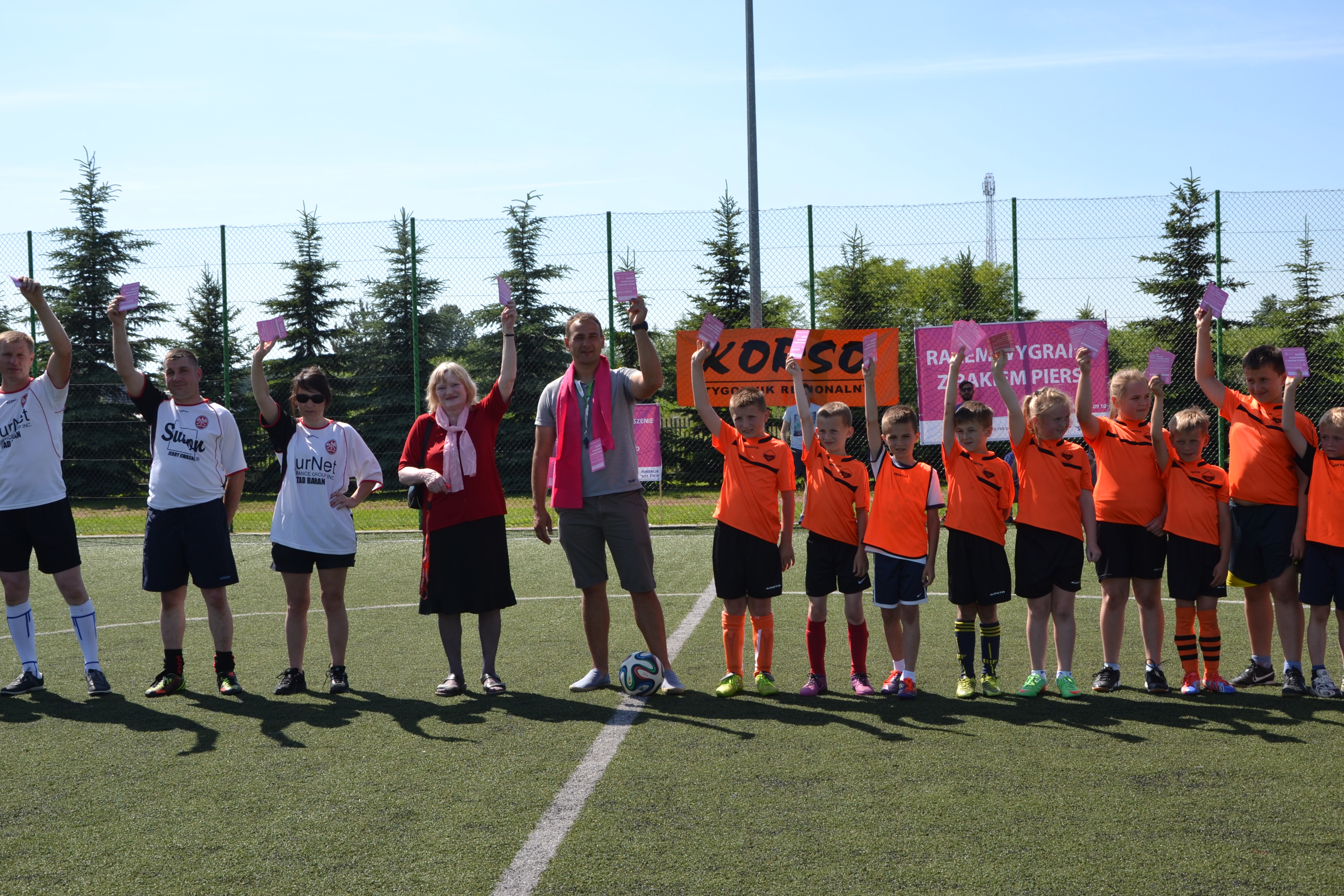 Zanim jednak rozległ się pierwszy gwizdek, zawodnicy rozdali kibicom ulotki na temat konieczności wykonywania badań mammograficznych.