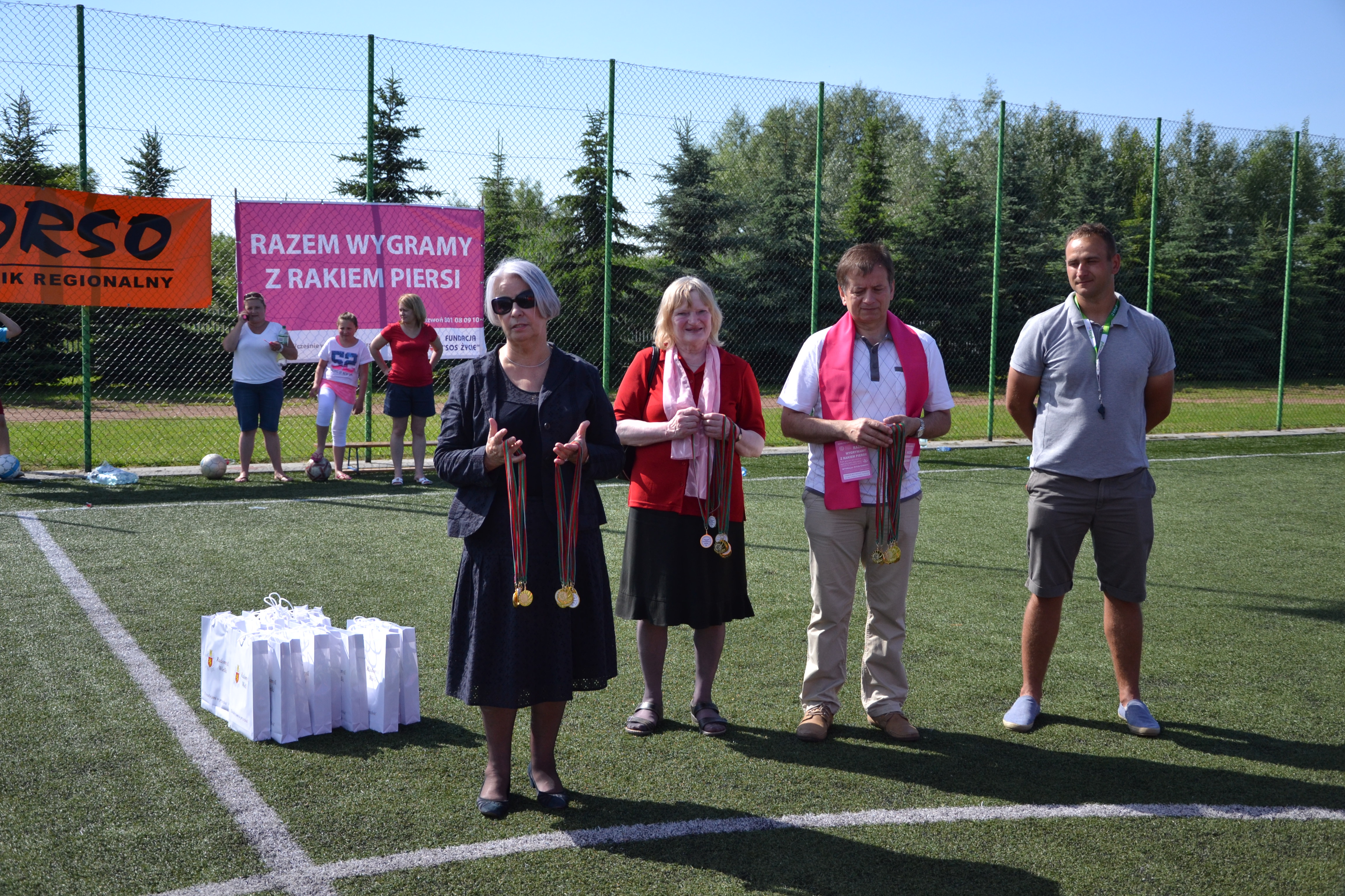 Po meczu Łucja Bielec i zastępca burmistrza podziękowali uczestnikom za włączenie się w tak ciekawą i szczytną akcję. Wszyscy piłkarze i piłkarki na zakończenie zostali uhonorowani specjalnymi medalami oraz upominkami od Urzędu Miejskiego.