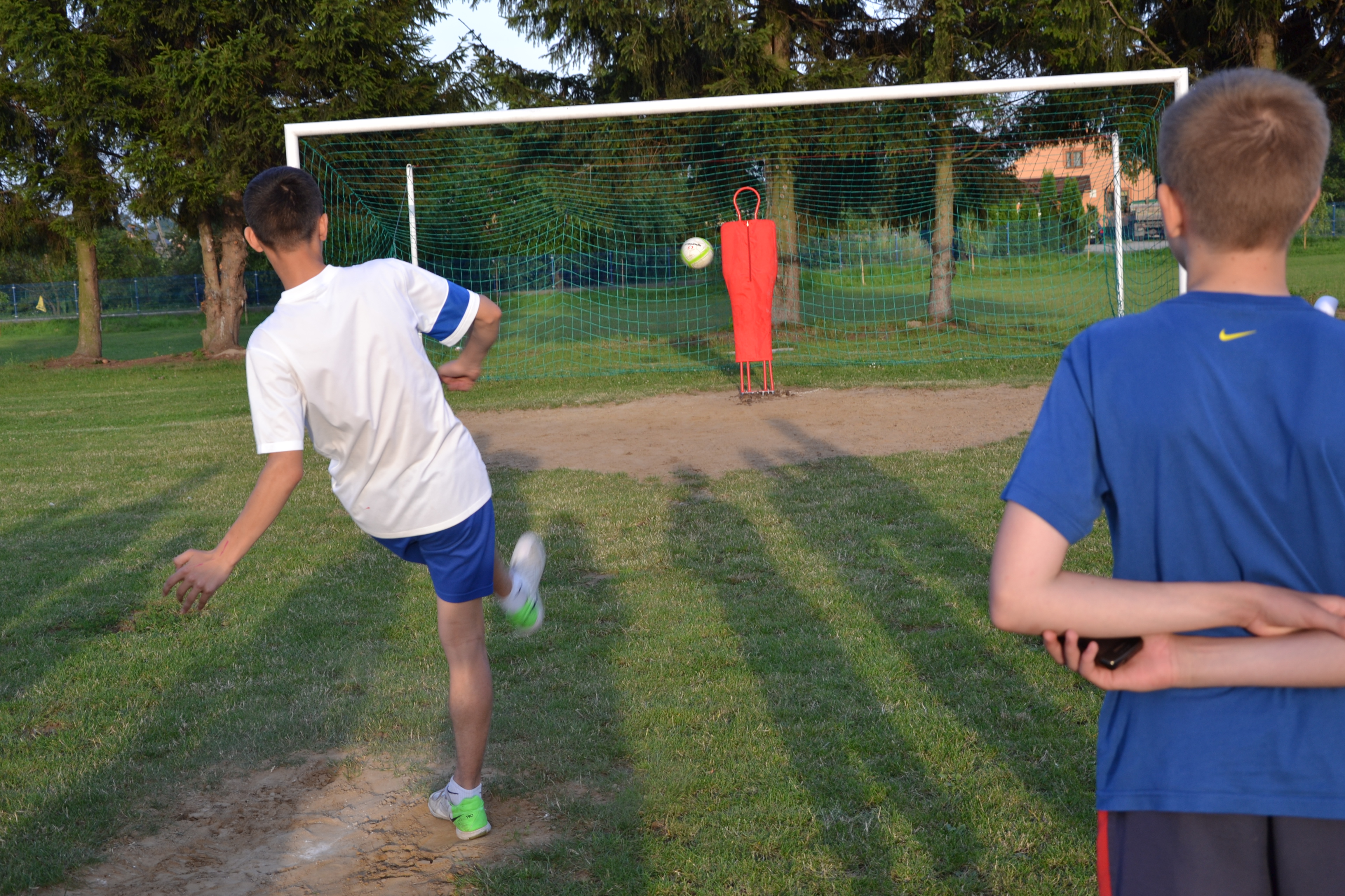 Slalom na czas zakończony strzałem na bramkę: Wiktor Drąg i Wojtek Masłyk