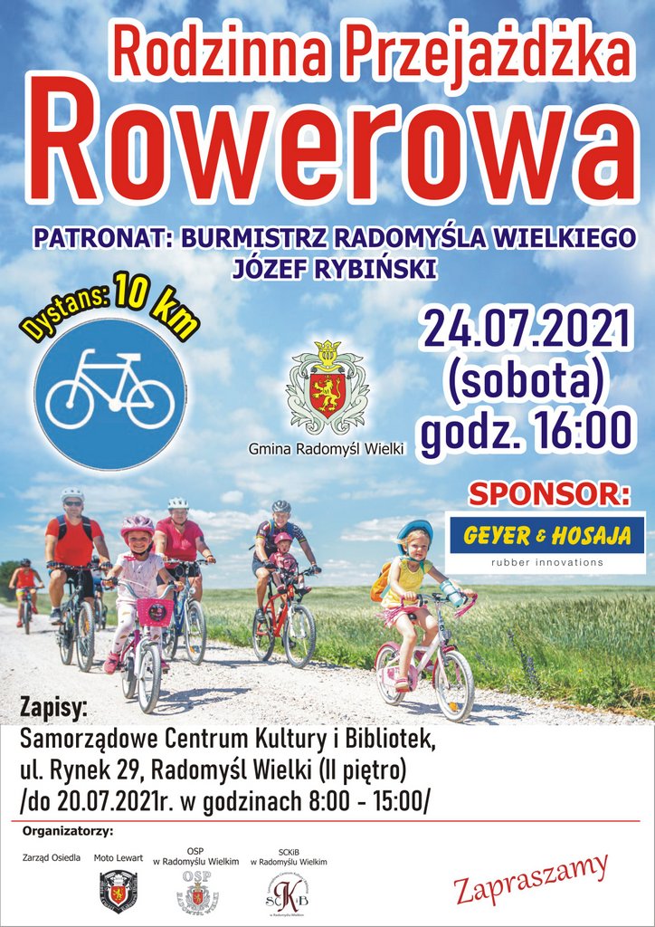 Zapraszamy na rodzinną przejażdżkę rowerową mieszkańców Gminy Radomyśl Wielki. Zapisy do 20 lipca w SCKiB.