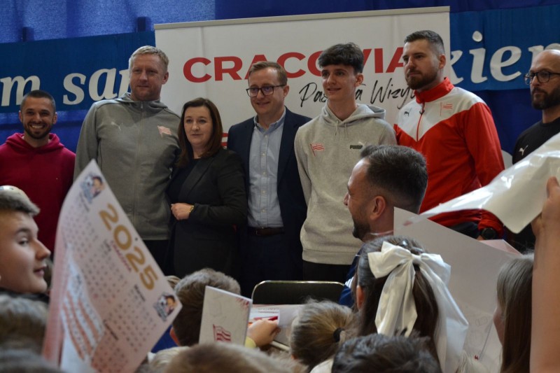 W kolejnej części uczniowie mieli okazję zadawać pytania – zarówno o piłkę nożną, jak i życie prywatne zawodników. Atmosfera była swobodna, a piłkarze chętnie dzielili się swoimi doświadczeniami. Po części oficjalnej wykonano wspólne zdjęcie wszystkich uczestników wydarzenia, a następnie przyszedł czas na autografy, pamiątkowe zdjęcia z piłkarzami oraz możliwość zakupu klubowych gadżetów, takich jak szaliki czy koszulki. Wizyta zawodników Cracovii była niezapomnianym wydarzeniem, które z pewnością na długo pozostanie w pamięci mieszkańców.