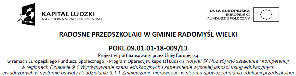 OGŁASZA NABÓR DZIECI DO SAMORZĄDOWYCH PRZEDSZKOLI NA ROK SZKOLNY 2013/2014 ORAZ ICH RODZICÓW DO UDZIAŁU W PROJEKCIE „RADOSNE PRZEDSZKOLAKI W GMINIE RADOMYŚL WIELKI”