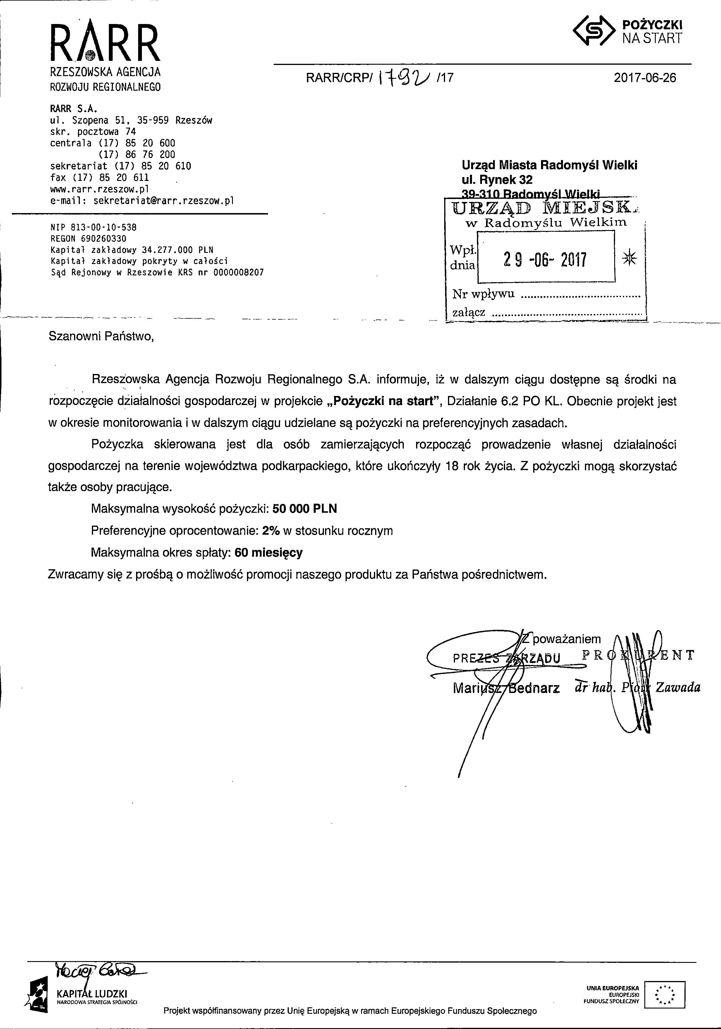 RARR S.A. informuje, iż w dalszym ciągu dostępne są środki na rozpoczęcie działalności gospodarczej w projekcie "Pożyczki na start".