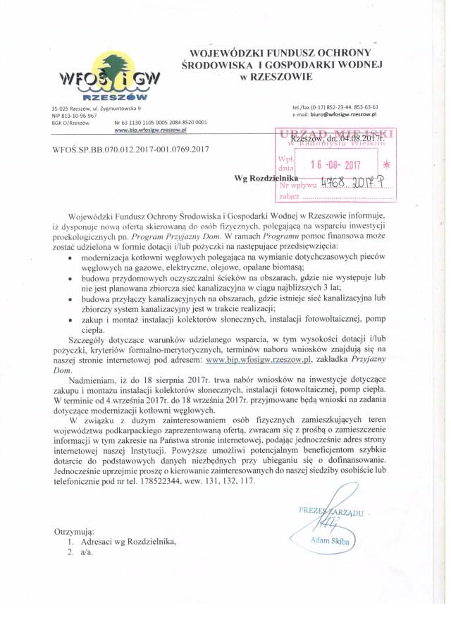 Informacja Wojewódzkiego Funduszu Ochrony Środowiska i Gospodarki Wodnej w Rzeszowie