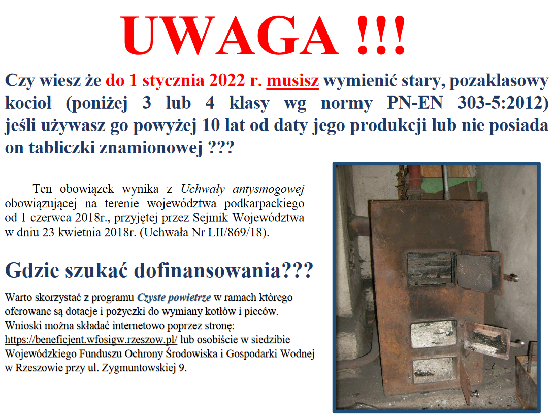 Informacje na temat Uchwały Antysmogowej dla Podkarpacia, do kiedy należy wymienić stary kocioł oraz gdzie szukać dofinansowania.