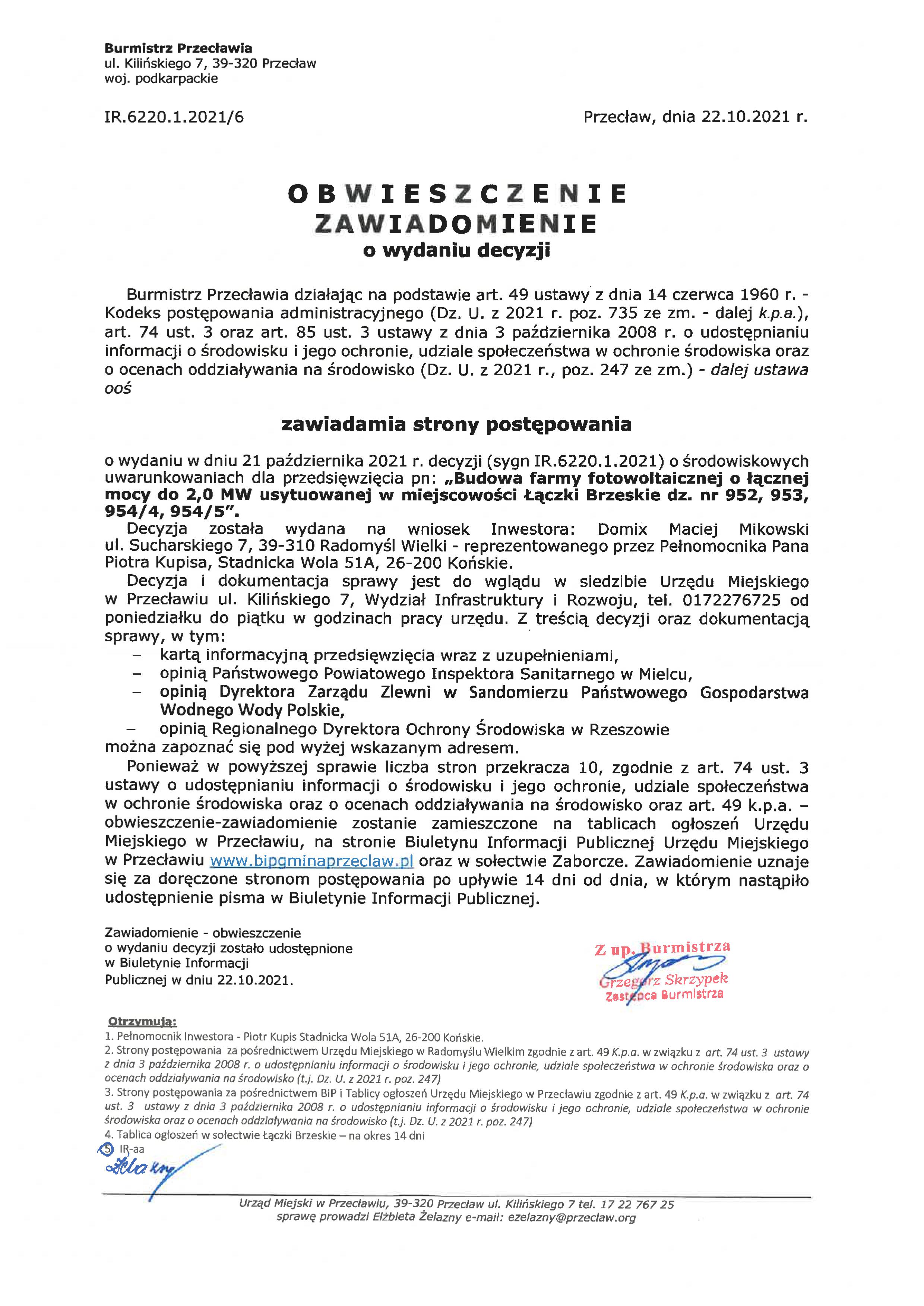 Obwieszczenie Burmistrza Przecławia