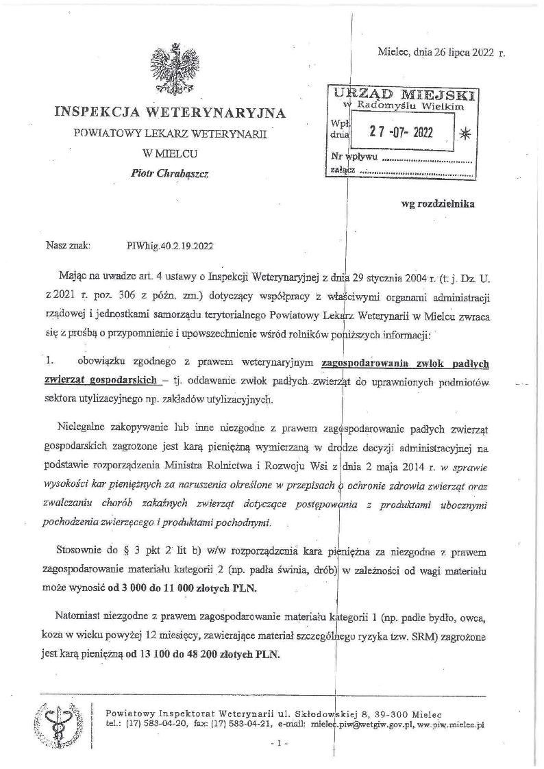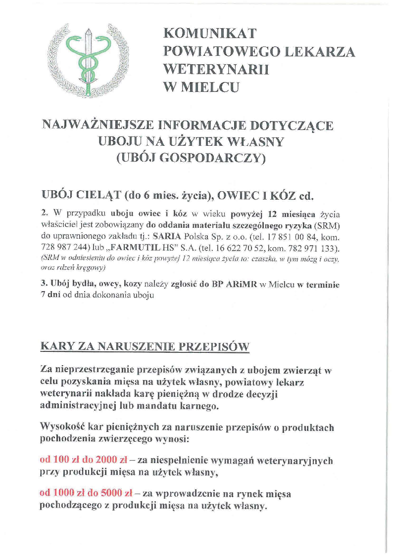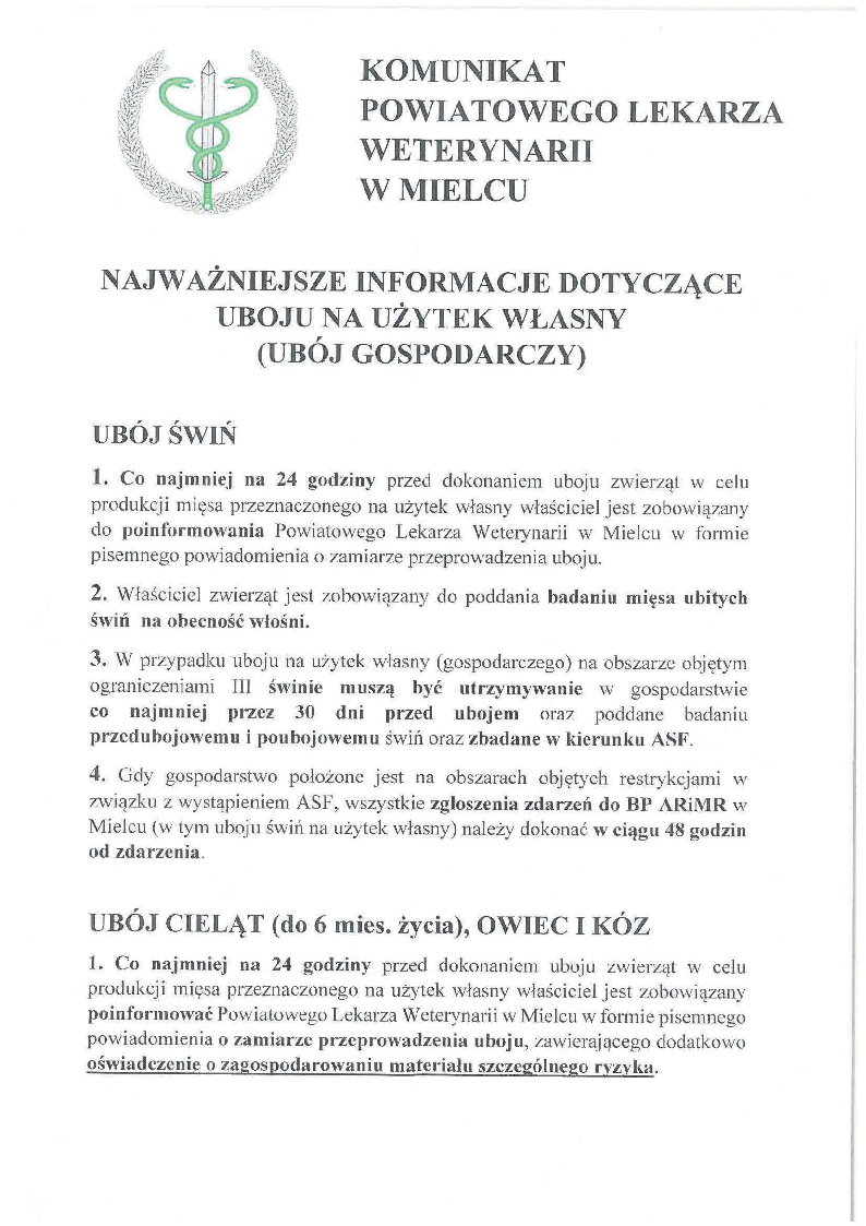 Komunikat Powiatowego Lekarza Weterynarii w Mielcu