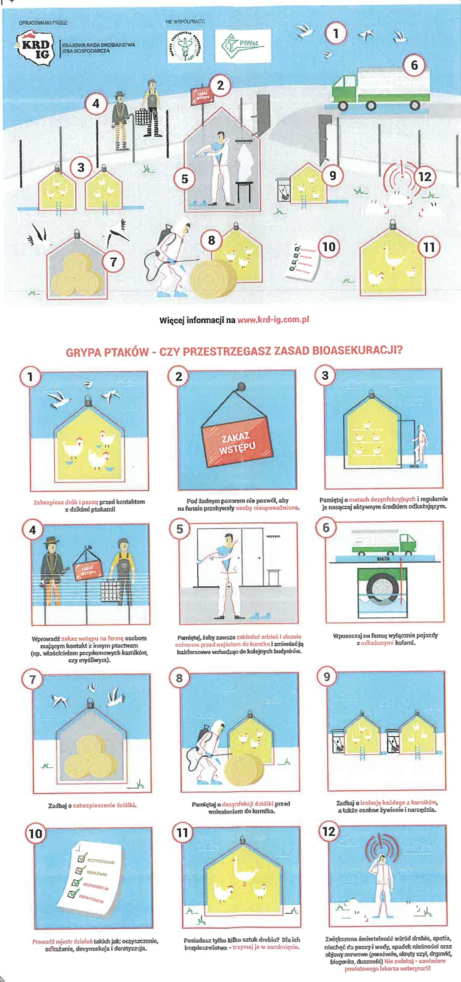 W związku z pojawieniem się przypadków wystąpienia wysoce zjadliwej grypy ptaków w Polsce, Powiatowy Lekarz Weterynarii w Mielcu przypomnina wszystkim rolnikom utrzymującym drób w swoich gospodarstwach o zasadach bioasekuracji (HAPAI)