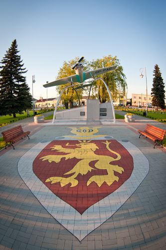 W rynku znajduje się eksponat polskiego przemysłu lotniczego – samolot M-2, podarowany w 1972 r. przez Aeroklub Mielecki Zarządowi Miejskiemu ZMS w Radomyślu Wielkim. Jest to jeden z dwóch zachowanych tego typu samolotów. Prototyp opracowano i zbudowano w 1956 r. w zakładach PZL-WSK w Mielcu pod kierunkiem inż. Stanisława Jachyry przez pierwszych po wojnie absolwentów Wydziału Lotnictwa Politechniki Warszawskiej. Miał być przeznaczony do szkolenia pilotów, lecz radzieckie władze zakładu nie dopuściły go do seryjnej produkcji pod pretekstem wad silnika, a samolot miał bardzo dobre osiągi jak na polską myśl techniczną. W dniu 14 września 1998r. samolot stał się Pomnikiem Pilotów Polskich Sił Powietrznych na Zachodzie wywodzących się z Ziemi Radomyskiej, o czym świadczą tablice na cokole.